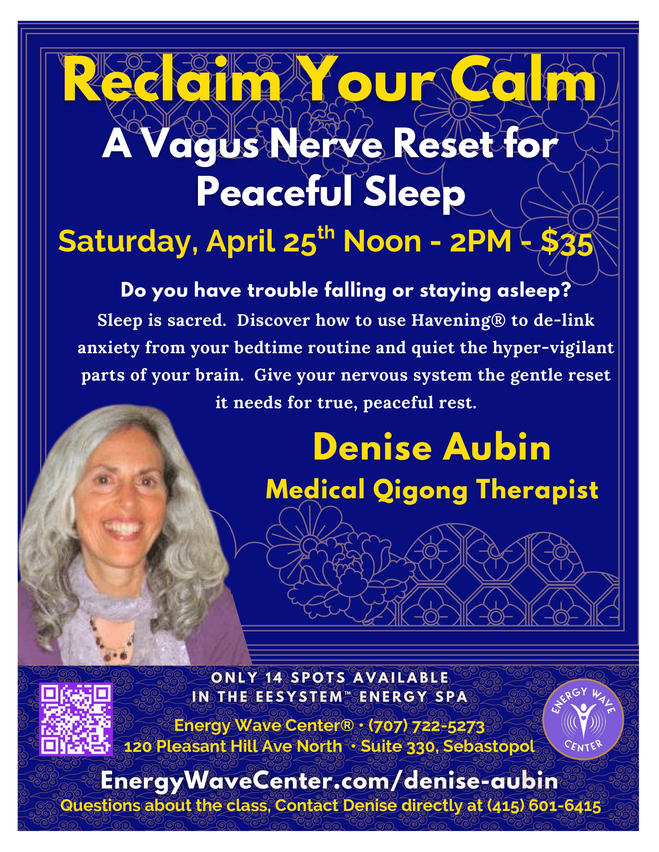 You are invited to join me for a special event at the Energy Wave Center in Sebastopol to Reclaim Your Calm: A Vagus Nerve Reset for Peaceful Sleep.